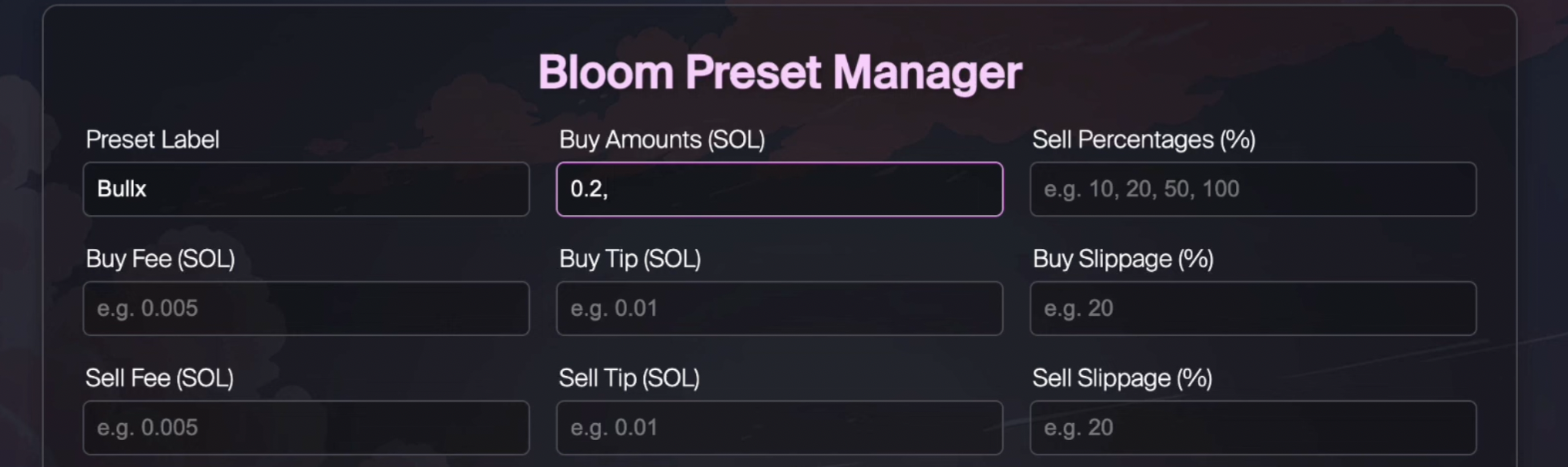- Solana and Ethereum Wallets: If you plan to trade Solana or Ethereum, make sure you have wallets set up and connected to your Bloom Trading Bot account.
